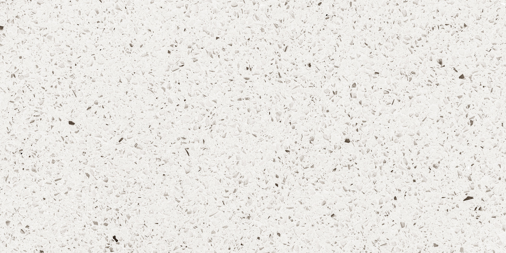 Glossy tile displaying a white quartz surface, specifically identified as Arctic starburst quartz , featuring a speckled pattern with various shades of grey and black. It's made of crushed quartz minerals combined with resins and pigments. Its glossy surface enhances the vibrancy of the material and its embedded flecks. It's able to withstand scratches, stains heat and its non-porous nature makes it hygienic and easy to maintain. It's commonly used for kitchen tops, counter tops, vanity tops, and other surfaces in both residential and commercial settings due to to its artistic appeal and practical merits. It can be used for floor as well because of its terrazzo look.