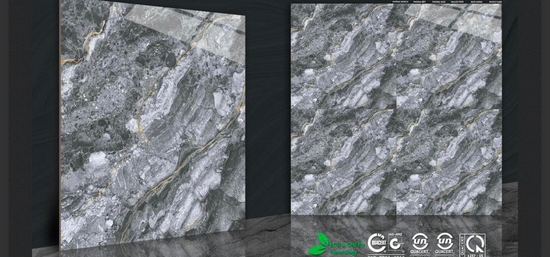 This tile features a sophisticated and dynamic blend of colours, primarily various shades of dark grey , along with white, and often  includes veins or hints of gold, beige, or light brown. It is characterised by vibrant and distinctive veining patterns, creating a sense of movement and personality within the stone. Due to its elegant and bold aesthetic, it is a popular choice  for both luxury residential and commercial projects, including countertops, flooring and wall cladding. It can be treated to achieve various finishes, such as polished or honed, depending on the desired aesthetic and application.