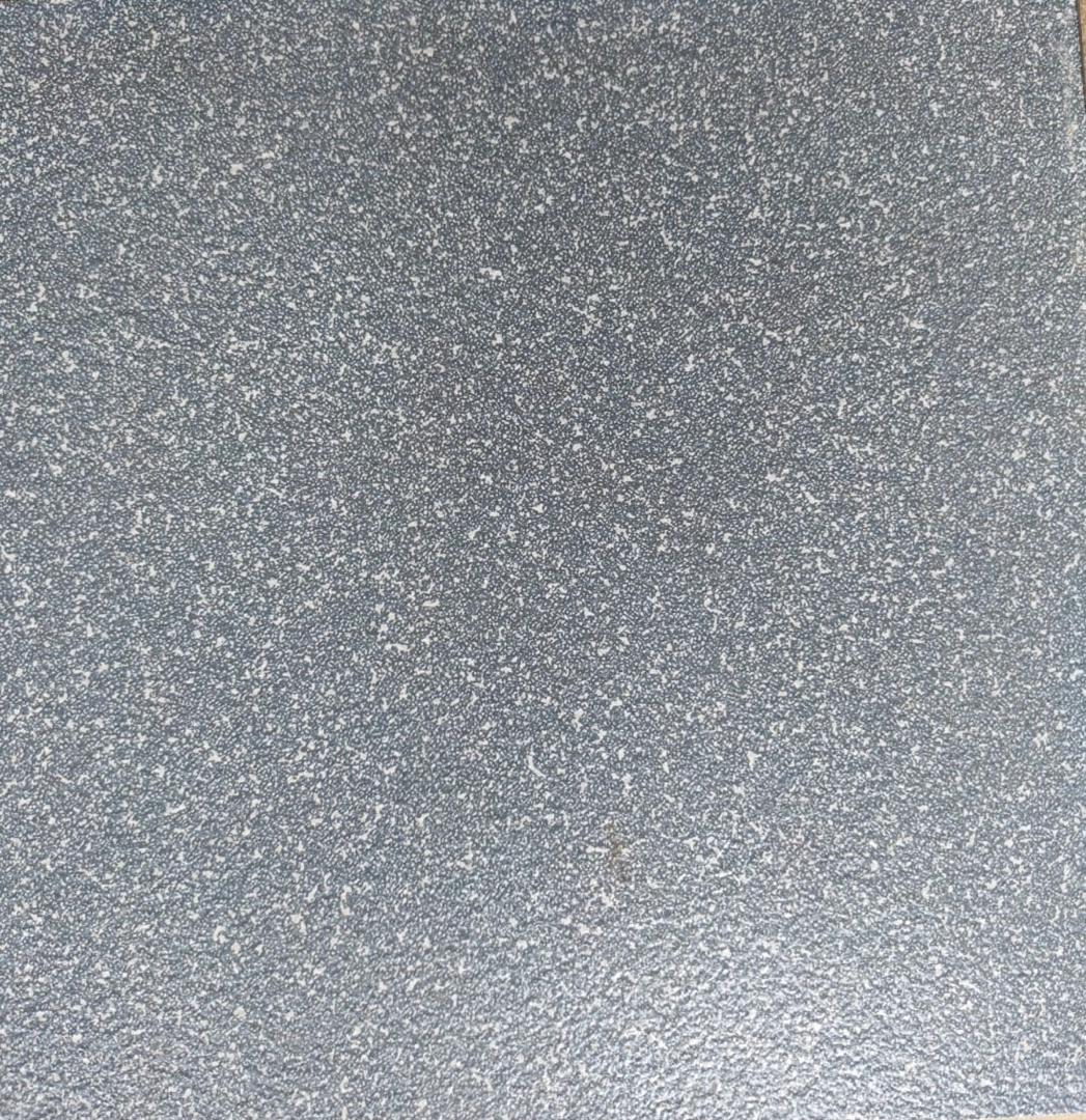 This is a tile with a speckled or textured finish, characterized by a blue base color with scattered lighter grey or white flecks. It mimics the appearance of traditional terrazzo flooring, which consists of chips of marble, quartz, granite, or glass set in a binder and polished smooth. It resembles the natural granular texture of granite stone. It provides a durable and slip- resistant surface in various indoor and outdoor settings. It is a blue tile with white dots.
